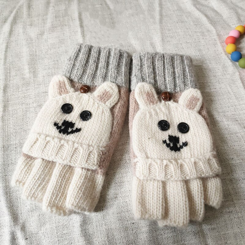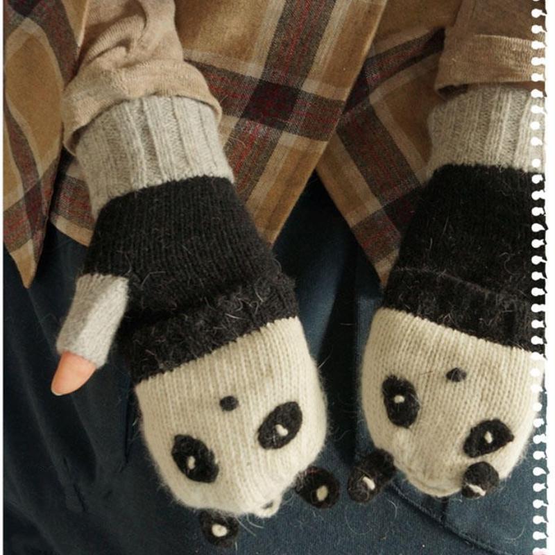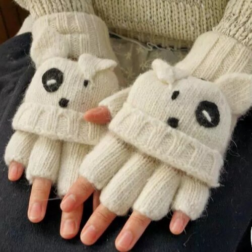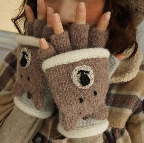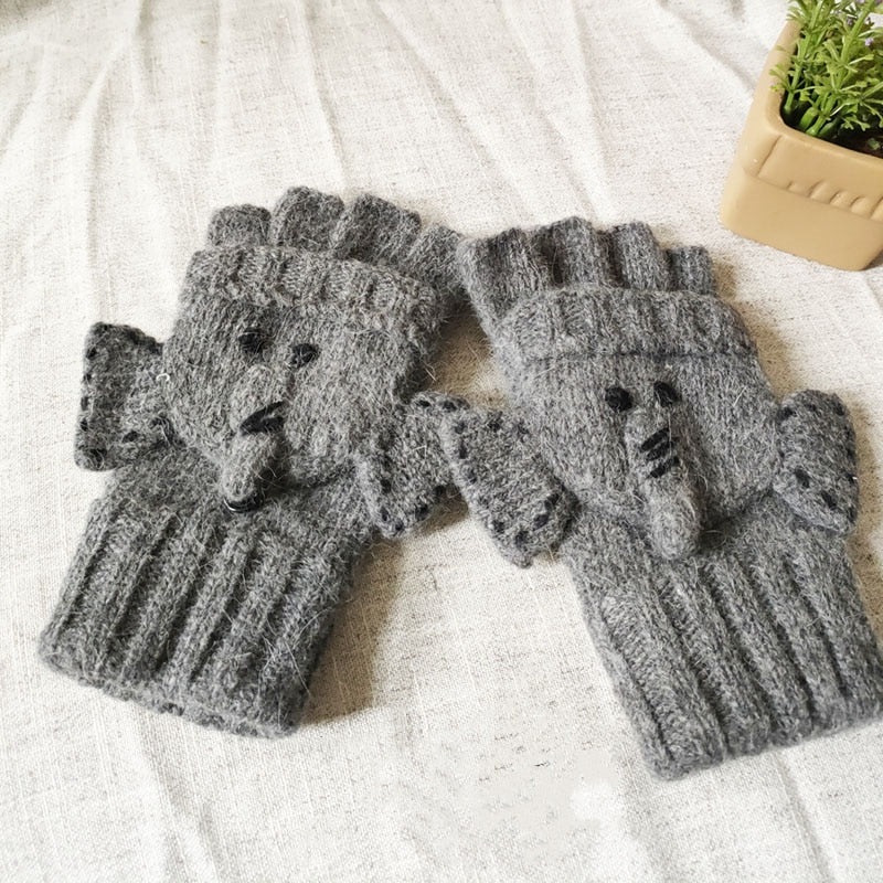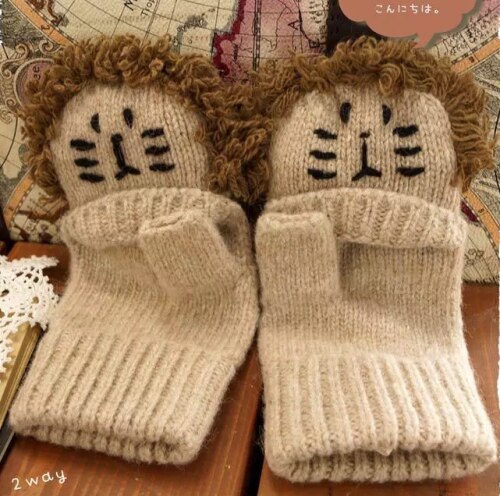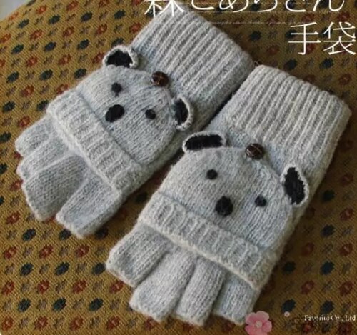 Mori Girl Lolita Kawaii Mezze Dita Cartoon Lovely Bear Lion Guanti di lana invernali Caldi