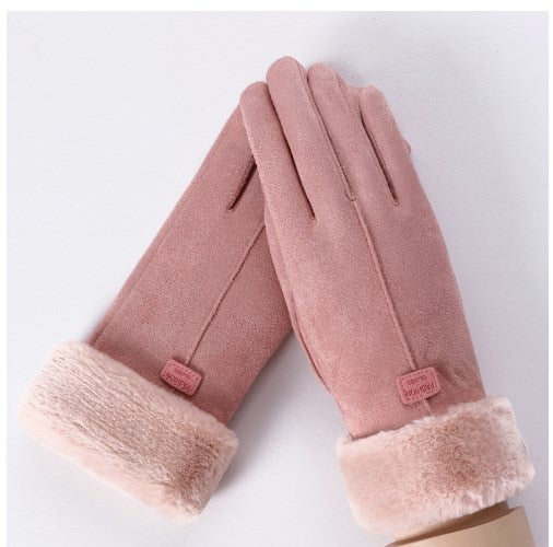 Guanti invernali da donna Schermo caldo Guanti di pelliccia da donna Guanti con dita intere Guanto da guida Guanti antivento Hiver Femme Guanti